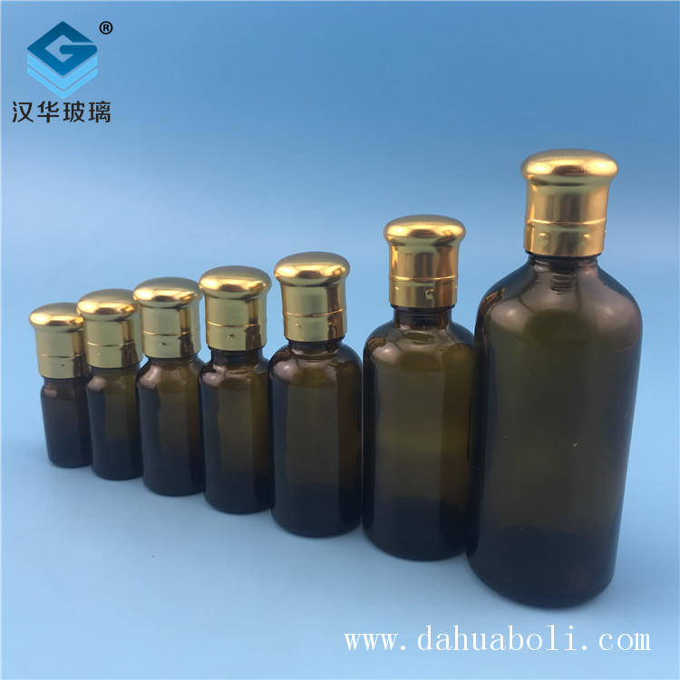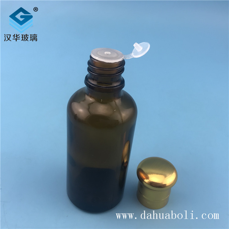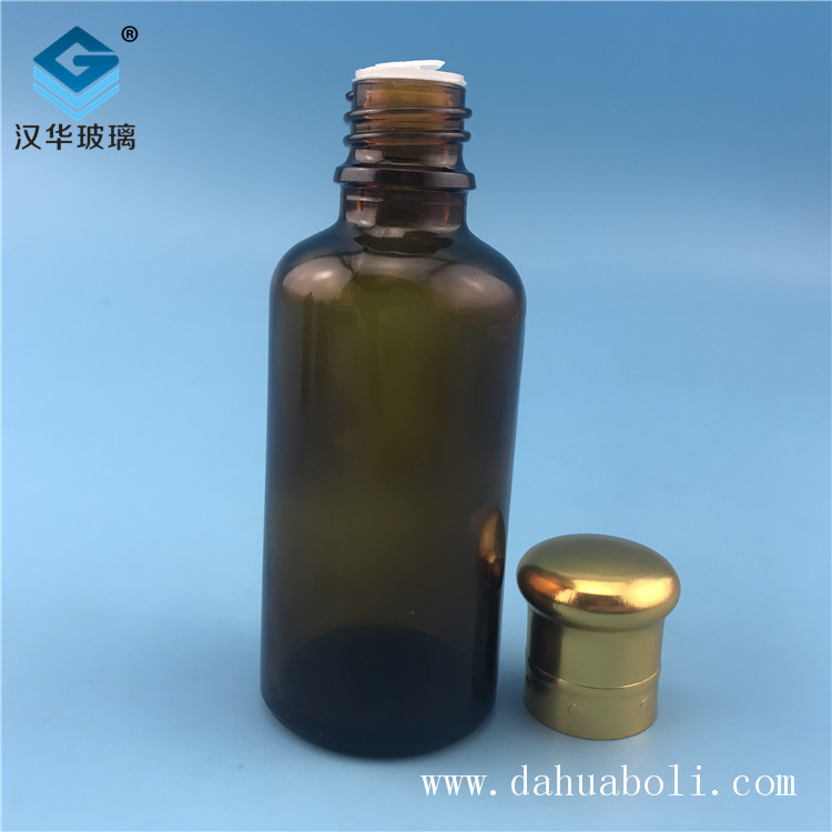| 50ml電鍍大頭蓋茶色精油玻璃瓶 |